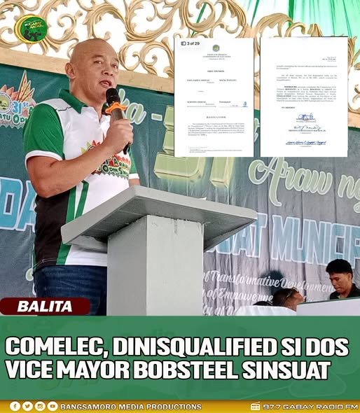 Diniskwalipika ng Commission on Elections (COMELEC) First Division si Bobsteel Sinsuat bilang Bise Alkalde ng… Read More
