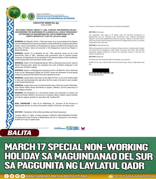 𝐌𝐀𝐑𝐂𝐇 𝟏𝟕 𝐒𝐏𝐄𝐂𝐈𝐀𝐋 𝐍𝐎𝐍-𝐖𝐎𝐑𝐊𝐈𝐍𝐆 𝐇𝐎𝐋𝐈𝐃𝐀𝐘 𝐒𝐀 𝐌𝐀𝐆𝐔𝐈𝐍𝐃𝐀𝐍𝐀𝐎 𝐃𝐄𝐋 𝐒𝐔𝐑 𝐒𝐀 𝐏𝐀𝐆𝐆𝐔𝐍𝐈𝐓𝐀 𝐍𝐆 𝐋𝐀𝐘𝐋𝐀𝐓𝐔𝐋 𝐐𝐀𝐃𝐑