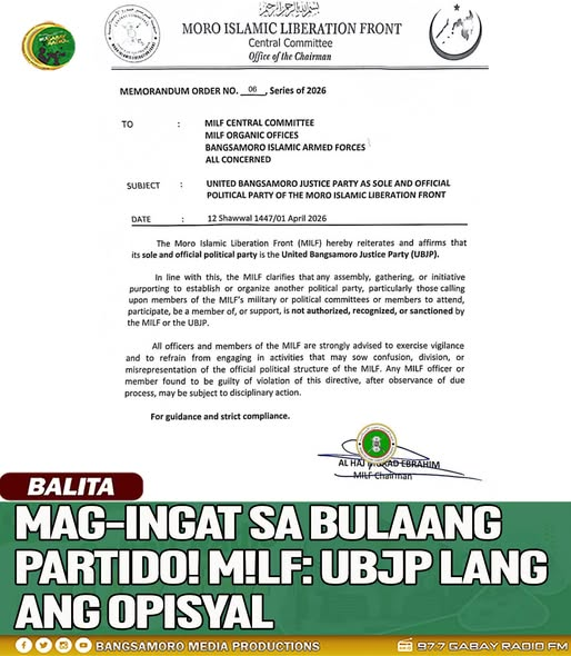 Muling pinagtibay ng Moro Islamic Liberation Front (M!ILF) sa pamamagitan ng isang Memorandum Order na… Read More