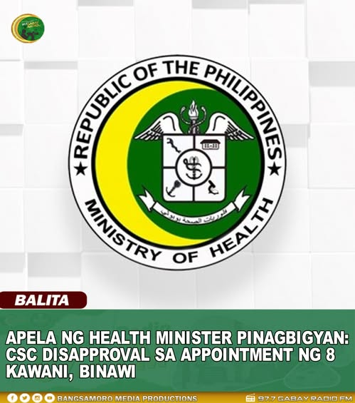 APELA NG HEALTH MINISTER PINAGBIGYAN: CSC DISAPPROVAL SA APPOINTMENT NG 8 KAWANI, BINAWI
