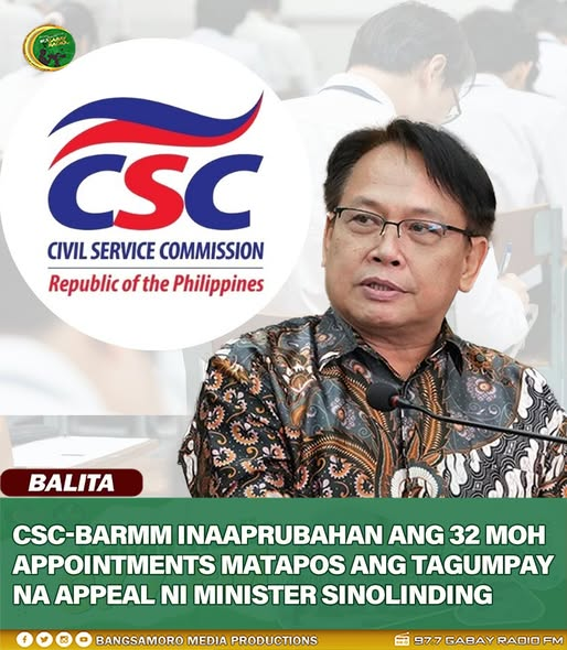 CSC-BARMM INAAPRUBAHAN ANG 32 MOH APPOINTMENTS MATAPOS ANG TAGUMPAY NA APPEAL NI MINISTER SINOLINDING