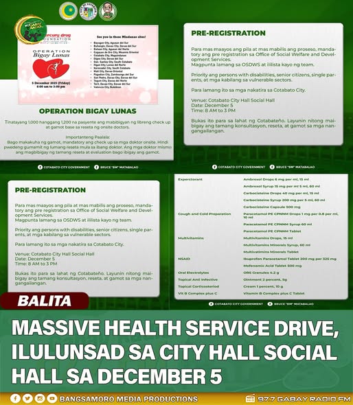 Libreng Medical Check-up at Gamot Hatid ng Mercury Drug Foundation at Cotabato City Government