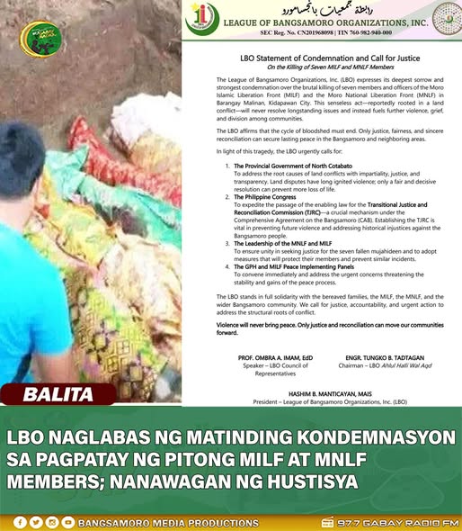 Naglabas ng matinding pagkondena ang League of Bangsamoro Organizations, Inc. (LBO) laban sa brutal na… Read More