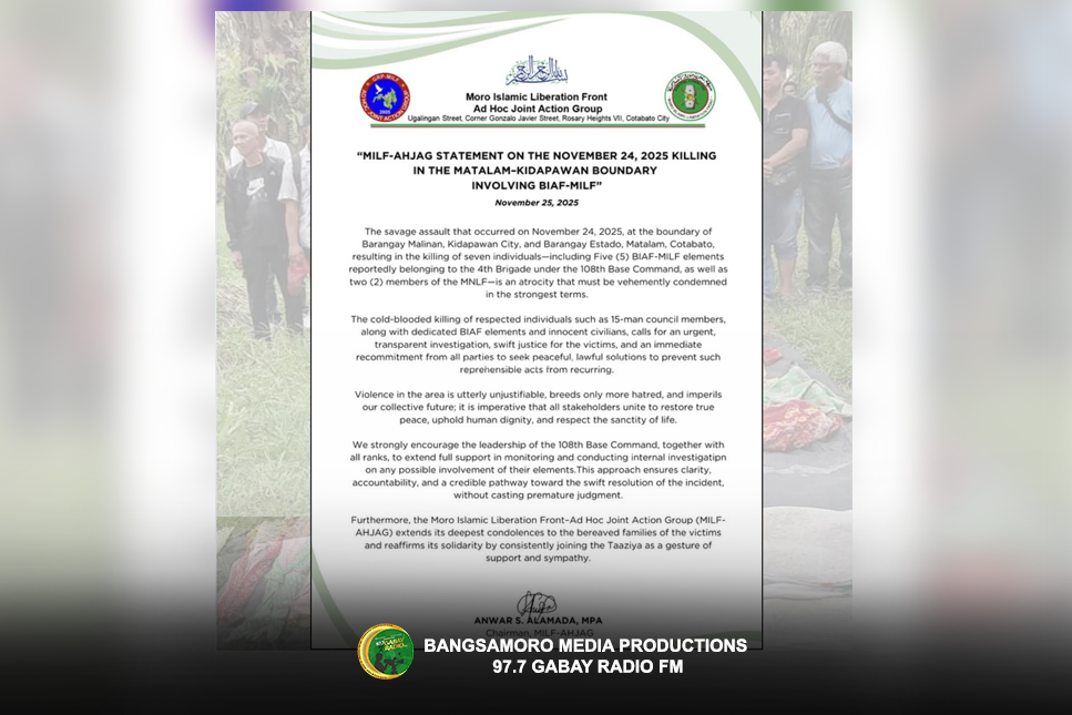 MILF-AHJAG Press Statement on the November 24 Killing in Matalam–Kidapawan Boundary November 25, 2025 Mariing… Read More
